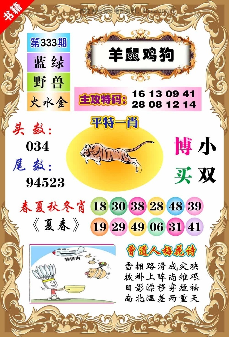 334期曾道人梅花诗:今期特码转开单,单是龙猪加马蛇,猴兔万财鸡又来,特是蓝绿金水开 解释:今期特码转开单,单是龙猪加马蛇,猴兔万财鸡又来,特是蓝绿金水开解猴狗肖 综合解肖:猴狗猪羊鸡马兔鼠蛇 | |||||||||||||||||||||||||||||||||||